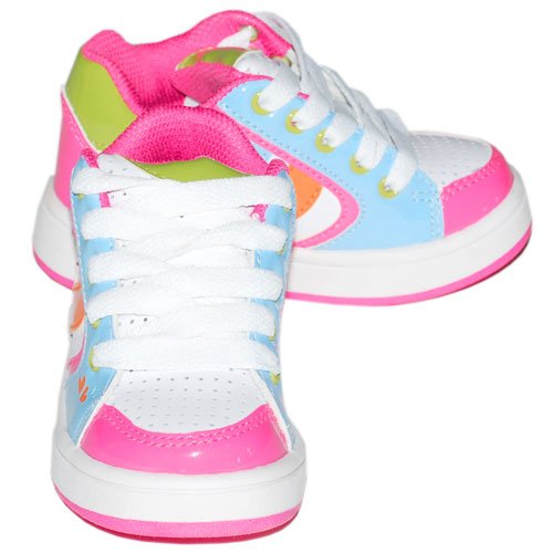 These shoes are the perfect addition to any little girls wardrobe. These lace-up mid-top shoes feature rainbow stripes. These very sturdy shoes are perfect for little walkers and their ventures around town. Moms will be jealous because they can't find a pair to match!
